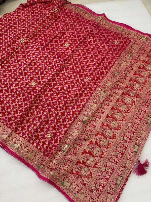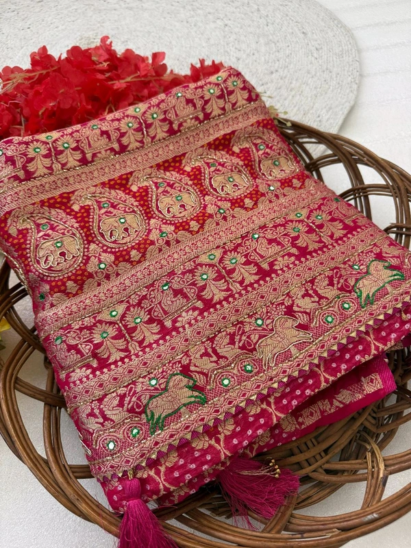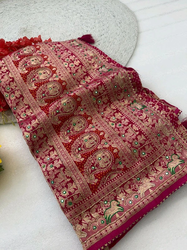 Pure Georgette Khadi silk with Russian silk and bandini style